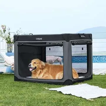 Lesure Soft Collapsible Dog Crate - 42 Inch Portable Travel Crate for Extra Large Dogs Indoor & Outdoor, 4-Door Foldable Pet Kennel with Durable Mesh Windows, Black