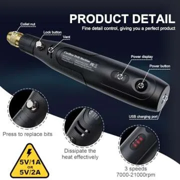 Show more Introducing the ultimate companion for every craft enthusiast – the LET'S RESIN Cordless Electric Hand Drill! This innovative tool is designed specifically for artists, jewelers, and hobbyists who demand precision and versatility in their projects. Featuring a powerful motor with an extraordinary 3-speed adjustment ranging from 7000rpm to 21000rpm, it offers unparalleled control and flexibility. Whether you're drilling through resin, shaping jewelry, or embarking on intricate modeling work, this drill does it all with impressive accuracy.