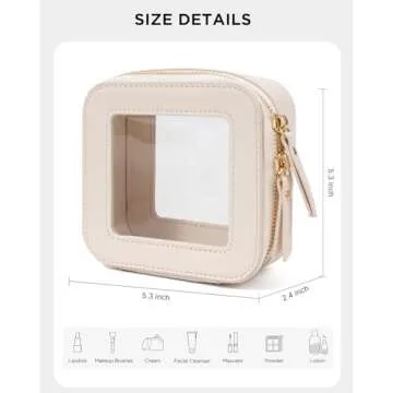 Show more This elegant and stylish clear makeup bag is the ultimate travel companion for anyone who values organization and aesthetics. The bag, designed by LETGO, comes in two convenient sizes: a large one measuring 9.84'' x 7.67'' x 3.14'' and a mini version at 5'' x 4.7'' x 2''. Crafted from beautiful PU leather with polished hardware, its minimalist boxy shape exudes both fashion and functionality.