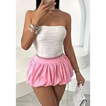LETSVDO Women's Bubble Mini Skirt Y2k Puffy Pleated Ruffle Elastic Waist A Line Flare Balloon Cute Summer Short Skirts