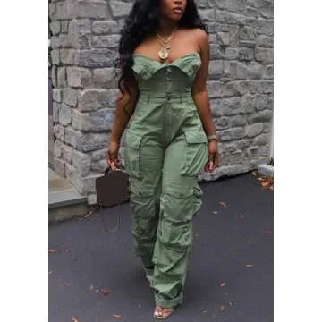Show moreStep into the spotlight with this stunning women's sexy strapless off-the-shoulder wide leg cargo jumpsuit. Designed for the modern woman who seeks both comfort and style, this versatile club one-piece romper is perfect for any occasion. Made from a blend of 95% polyester and 5% spandex cotton, the fabric allows for a breathable fit while providing just the right amount of stretch. With its loose-fitting design and wide leg silhouette, you'll feel free and confident whether you're dancing the night away or enjoying a casual outing.