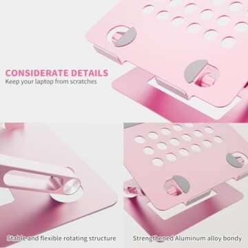 LETTON Colorful Adjustable Laptop Stand, Handy Laptop Riser, Aluminum Laptop Stand for Desk Foldable, Ergonomic Computer Notebook Stand Holder for MacBook Air Pro, Dell XPS, HP (9-15.6'') -Pink