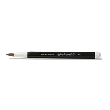 Show moreIntroducing the LEUCHTTURM1917 - Drehgriffel Writing Pen, a standout in the realm of ballpoint pens that combines elegance with functionality. This sophisticated pen boasts a stunning black finish, making it a timeless accessory for any writing enthusiast. Crafted with precision, the Drehgriffel features a durable aluminum and brass construction that ensures longevity while providing a comfortable grip during extended writing sessions. Designed with a unique hexagonal shape and a classic pointed tip, this pen not only feels great in your hand but also offers superb writing accuracy that transforms every stroke into art. With its iconic design rooted in the style of the 1920s, the Drehgriffel is a must-have for those who appreciate meticulous craftsmanship and distinct aesthetics.