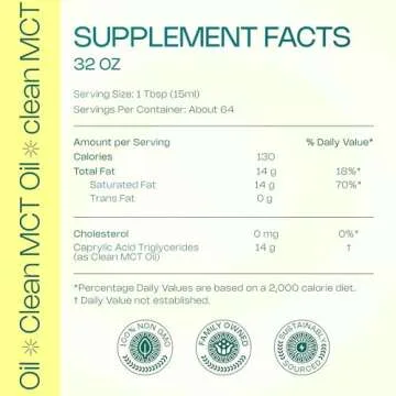 LevelUp Clean MCT Oil - 100% Caprylic C8 for Energy, Focus, Gut Health, Brain Superfuel - Keto Supplement for Ketogenic Coffee and Ketones - Non-GMO (32 oz Glass Bottle)