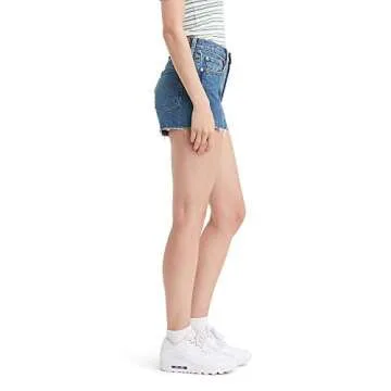 Show moreStep into timeless style with the Levi's Women's 501 Original Shorts, a quintessential blend of classic design and modern comfort. The High Rise design sits elegantly above the waist, providing a flattering silhouette that hugs the hip and thigh without sacrificing ease of movement. The inseam measures 3 inches when unrolled and 2.5 inches when rolled, making them perfect for casual outings and warm-weather adventures.