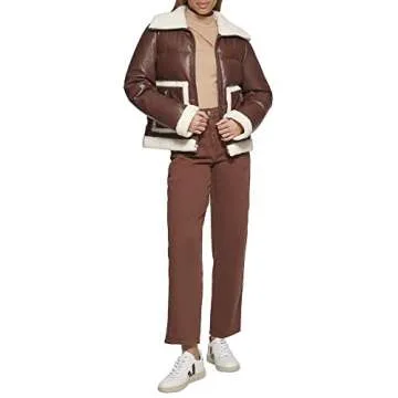 Levi's Women's Breanna Fur Puffer Jacket (Standard & Plus Sizes), Brown Faux Leather Sherpa Pocket, Small