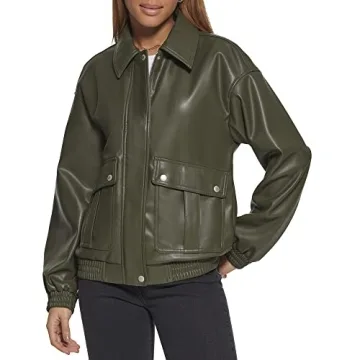 Show moreIntroducing the **Levi's Women's Faux Leather Lightweight Dad Bomber Jacket**, an iconic piece that cleverly combines modern style with vintage flair. Designed for those who appreciate both fashion and functionality, this jacket features a relaxed fit that not only looks chic but also allows for easy layering. Made from high-quality faux leather, it gracefully transitions from day to night, making it a must-have for your wardrobe. The timeless forest green color is a refreshing change from typical leathers, offering a unique twist to your outfits while ensuring you stand out in a crowd. With a tailored laydown collar, dual closure (hidden zipper and snap button placket overlay), and two lower flap pockets coupled with two side entry welt pockets, this jacket encapsulates convenience and versatility.