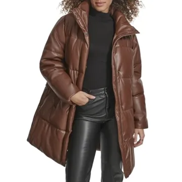 Show moreIntroducing the Levi's Women's Faux Leather Mid-Length Puffer Coat, the perfect blend of style, comfort, and functionality. This trendy women's jacket features a quilted fabric with a remarkable water-resistant vegan leather exterior, ensuring you stay chic no matter the weather. Its flattering silhouette not only enhances your look but also offers a comfortable fit, making it ideal for those chilly days. Available in a rich dark brown hue, this coat is versatile enough to pair with a variety of outfits, making it an essential addition to your wardrobe.