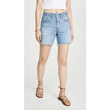 Show moreIntroducing the Levi's Women's Premium 501 Mid Thigh Short, Luxor Street (Waterless)—the pinnacle of summer comfort and style! These high-rise shorts are carefully designed to sit just above the waist, offering a flattering fit that complements your hip and thigh while maintaining the classic denim aesthetic that Levi's is renowned for. With a precise 6-inch inseam, these shorts provide the ideal length for any casual outing, whether you're running errands, hitting the beach, or enjoying a laid-back picnic in the park.