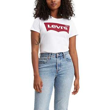 Levi's Women's Premium Logo Perfect T-Shirt, Large Batwing White