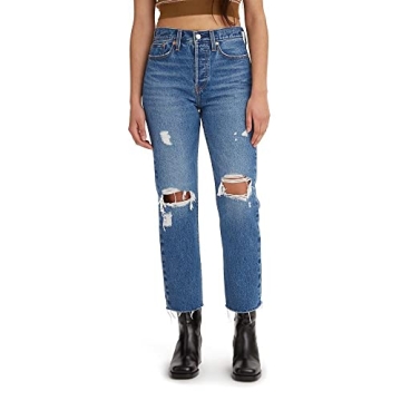 Levi's Women's Premium Wedgie Straight Jeans, (New) Medium Indigo Destructed, 28