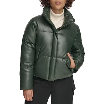 Show moreElevate your wardrobe with the Levi's Women's Vegan Leather Quilted Short Puffer Jacket in Darkest Spruce. This jacket combines style and functionality with its quilted fabric and water-resistant vegan leather exterior, making it a must-have for any fashion-forward individual. Designed for comfort and style, its flattering silhouette enhances your look while keeping you dry and comfortable in light rain. The cropped design offers a versatile look suitable for various occasions and seasons. Whether you're layering over large sweaters or wearing it as a standalone piece, this jacket is a wardrobe staple that promises to keep you warm and stylish.