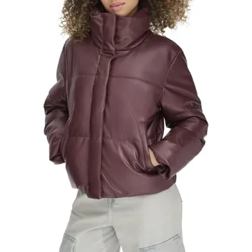 Show moreIntroducing the Levi's Women's Vegan Leather Quilted Short Puffer Jacket in a stunning Fig color—where style meets functionality! Crafted with a quilted fabric and a chic, water-resistant vegan leather exterior, this jacket not only enhances your wardrobe but also ensures you stay cozy during brisk nights. Measuring perfectly for both style and comfort, it’s tailored to fit beautifully, making it a wardrobe staple you'll reach for time and time again. Designed to be flattering for all body types, you can feel confident flaunting this eye-catching piece, whether you're out for a casual coffee or a night on the town.
