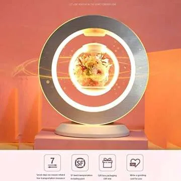 Levitating Air Bonsai Flower Lamp, Mini Sky-Garden Rotating Rose Flower Preserved Eternal Flower Magnetic Levitation Suspension Floating Flower Night Light, Gift for Valentines Day/Birthday (White)