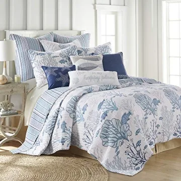 When compared to other quilt sets on the market, the Levtex Home Lacey Sea Quilt stands out due to its blend of artistry and functionality. Many competitors either offer lower grade materials or lack the unique reversible design. This makes the Lacey Sea not just a quilt set, but an investment in comfort and style that can adapt to various decorating needs over time. The intricate and vibrant coastal pattern is exclusive to Levtex, making it a distinctive choice amongst plain and monotone alternatives. Its easy maintenance and quality craftsmanship give it an edge that is hard to match.