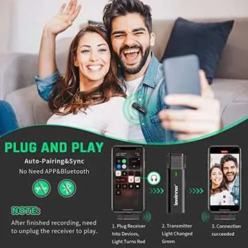 lewinner Wireless Lavalier Microphone for iPhone iPad, Plug & Play 2.4GHzLapel Mic with Charging Case for TikTok YouTube Facebook Live Stream Vlog Video Recording Noise Reduction/Auto Sync, Dark Grey
