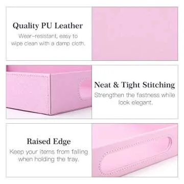 Lewondr ServingTray with Wide Handles, PU Ottoman Serving Tray, 14.96" x 9.45" x 1.97" Desktop Serving Platter, Jewelry Key Catchall Tray, Countertop Storage Organizer Plate for Kitchen,Office - Pink
