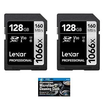 Lexar 128GB Professional 1066x SDXC Class 10 UHS-I Memory Card 2-Pack Bundle with Microfiber Cloth