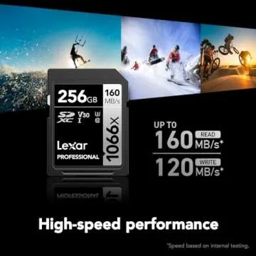 Show moreIntroducing the Lexar 256GB Professional 1066x SDXC Memory Card, a top-tier solution for photography enthusiasts and professionals alike. This high-speed memory card is tailored to meet the demanding needs of DSLR and mirrorless cameras. Rated with **UHS Speed Class 3 (U3)** and **Video Speed Class 30 (V30)**, it guarantees swift performance for continuous shooting and recording high-quality video content. The remarkable read speeds of up to **160MB/s** (1066x) allow for rapid file transfers, while write speeds reaching **120MB/s** ensure you can capture stunning images and extended lengths of **Full-HD and 4K UHD video** with ease. Its robust design enhances durability, making it an ideal companion for photographers who venture into challenging environments.