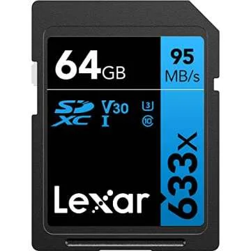 Lexar Professional 633x 64GB SDXC UHS-I Cards, Up To 95MB/s Read, for Mid-Range DSLR, HD Camcorder, 3D Cameras, LSD64GCB1NL633 (Product Label May Vary)