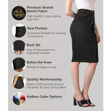 While various denim skirts flood the market, the Lexi Women's Super Comfy Stretch Denim Skirt stands out with its unique blend of style and comfort. Unlike many competitors that prioritize either comfort or aesthetics, this skirt successfully merges both attributes, ensuring you feel as good as you look. Also, its range of sizes and lengths allows a more customized fit compared to other brands that often overlook inclusivity.