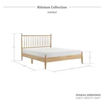 Lexicon Full Bed Frame with Headboard, Mid Century Modern Wood Platform Bed Frame with Vertical Slat Headboard, No Box Spring Needed, Easy Assembly, Natural