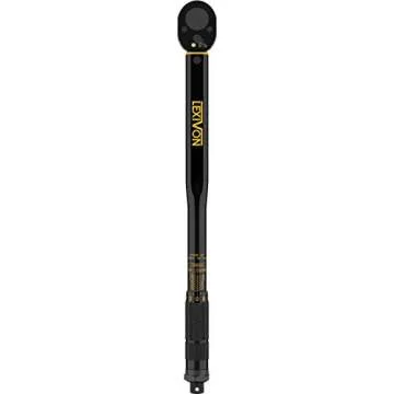 Show more Introducing the LEXIVON 1/2-Inch Drive Click Torque Wrench Bundle, your ultimate solution to precision torque measurement! This comprehensive package includes a 1/2-inch drive click torque wrench with a torque range of 10 to 150 Ft-Lb (13.6 to 203.5 Nm), ensuring you can tackle a variety of tasks with unmatched accuracy. Each wrench arrives pre-calibrated to an impressive +/- 4% accuracy and comes with a calibration certificate, providing you with the confidence that your tools are as reliable as you are. Designed with a dual-range scale featuring a highlighted yellow print, this wrench allows for easy identification of markings even in the dimmest lighting conditions.