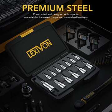 LEXIVON Torx Bit Socket Set, Premium S2 Alloy Steel | 13-Piece Star T8 - T60 Set | Enhanced Storage Case (LX-143)