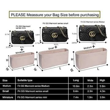 Show moreTransform your handbag experience with the LEXSION Felt Purse Organizer—your ultimate solution for keeping your essentials organized, secure, and easily accessible! Made from high-quality, durable felt fabric, this organizer is designed not only to fit perfectly but to complement the style of your medium-sized bags, including the chic GG Marmont Medium Matelasse Shoulder Bag. Each pack comes with two expertly crafted inserts: one featuring a functional zippered compartment for secure storage and another without, ideal for larger items. With precision dimensions of 7.4(L)x1.9(W)x3.9(H) inches, your purse will maintain its sleek silhouette while benefiting from enhanced organization.