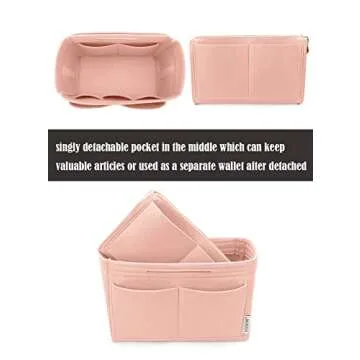 This organizer is specifically engineered with practicality in mind, featuring a total of 13 pockets – 3 exterior and 10 interior, along with a detachable middle pocket that doubles as a wallet. Its sturdiness ensures that your valuables are securely held in place, while its soft, pliable material provides gentle protection for your items. Users rave about how it transforms chaotic bags into neat, accessible spaces, enhancing their everyday life with ease and elegance.
