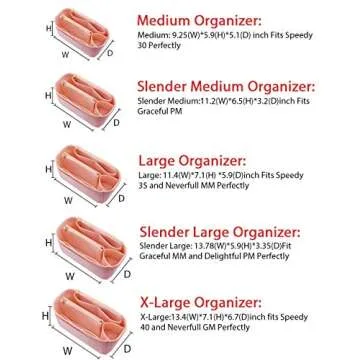 The LEXSION purse organizer comes in Medium, Slender Medium, Large, Slender Large, and X-Large sizes, fitting various brands perfectly.