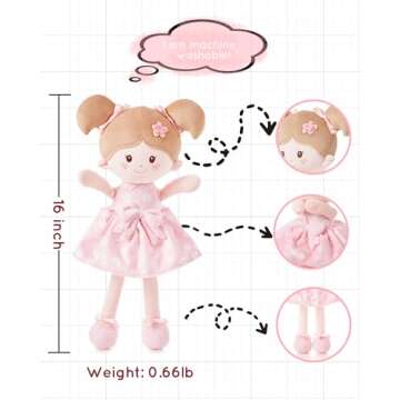 Show moreIntroducing the **LeyaDoll Personalized Soft Baby Doll**, an enchanting 16-inch creation that bridges the gap between childhood nostalgia and personalized love. This delightful doll, named FloraBelle in a pretty pink hue, is more than just a toy; it's a symbol of affection designed to foster a meaningful connection between your child and their beloved companion. With the option to choose a name that resonates personally, this doll becomes a cherished keepsake, encouraging your child to create a unique bond filled with love and care. Imagine the joy on your little one’s face as they cuddle this soft friend, making memories that will last a lifetime.