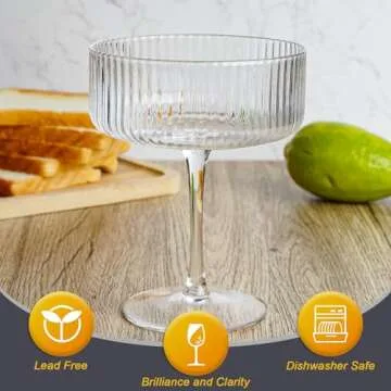 LEYU Ribbed Coupe Glasses Set of 2, 11.8 oz Fluted Cocktail Glasses for Martini Champagne and Wine. Vintage Drinking Glass-Clear Ribbed Glassware