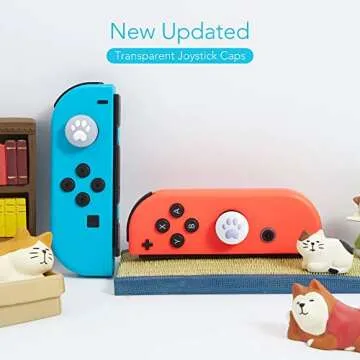 LeyuSmart Upgrade Translucent Cat Paw Thumb Grips Caps for Nintendo Switch & Lite, Clear Silicone Thumb Cap, Soft Cover Skin for Joy-Con Controller Thumbstick(Purple&White)