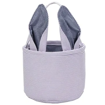 Adorable Leziazany Easter Basket Seersucker Design with Bunny Ears for Kids and Parties