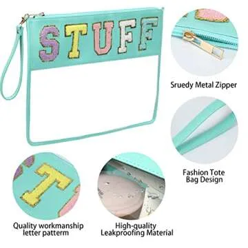Show more Introducing the ultimate companion for all your adventures – our stylish Clear Letter Stadium Beach Bag. This fashionable yet practical bag measures 12.4 inches in length, 8.35 inches wide, and 2 inches tall, making it the perfect size for all your essentials. Crafted from transparent waterproof PVC and durable polyester, this bag ensures that your belongings stay safe and dry no matter the situation.