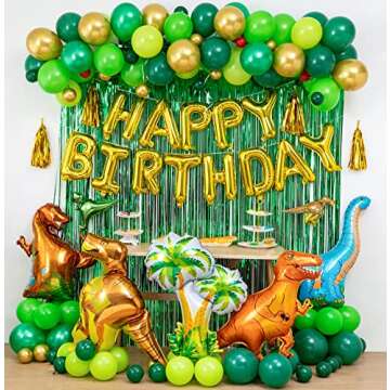LFVIK Dinosaur Birthday Party Decorations&Balloons Arch Garland Kit(Gold,Green),Dinosaurs Balloons,HAPPY BIRTHDAY Balloons,Curtains,for Dino Themed Kid's Party,Shower,Celebration.