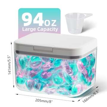 Show moreDiscover the ultimate convenience in laundry storage with the LFZHAN Laundry Pods Container. Engineered for ease of use, this stylish container features a one-click pop-up design that allows you to access your laundry pods effortlessly. A simple push of the lid open button lets you grab what you need quickly, making your laundry routine more efficient. The 94 oz (5.8 lb) capacity ensures you have ample space for all your laundry essentials, while its elegant appearance enhances the aesthetic of your laundry room.