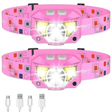 Show moreDiscover the ultimate hands-free lighting solution with the LHKNL Headlamp Flashlight. This 2-pack set features a super bright 1200 lumen output, powered by high-quality LED chips for unparalleled visibility. The headlamp introduces a innovative long press function and motion sensor mode, allowing for easy operation even with dirty hands. Its 1500mAh rechargeable battery ensures long-lasting use, with the convenience of charging while in use. Designed for comfort and versatility, the headlamp is ultra-lightweight, adjustable, and features a 60° rotatable lamp head for optimal lighting angles. With IPX4 waterproof rating and 8 lighting modes, it's perfect for any outdoor adventure. The unique pink design makes it an ideal gift for women and girls.