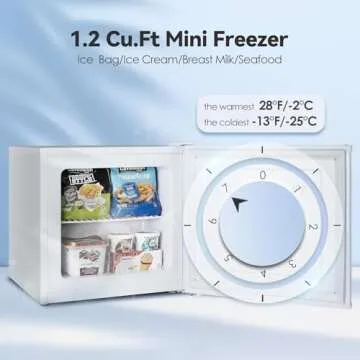 Introducing the LHRIVER Mini Freezer, your perfect solution for compact and efficient food storage! Measuring only 19.69"(L) x 19.49"(W) x 19.53"(H), this 1.2 cu.ft small upright freezer offers remarkable storage capacity, making it an ideal choice for apartments, small kitchens, or even your bedroom. Designed to keep your food items at optimal temperatures, this little powerhouse features upgraded functionalities that cater to modern living. The freezer's sleek appearance...