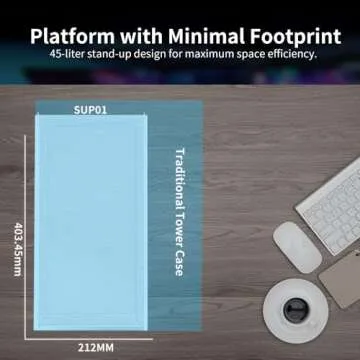 Lian Li SUP 01-45L Stand-Up Platform case- Independent Chamber Direct Cooling design-510mm PCIe 4.0 Riser Cable-Pre-Installed 3X 120mm Fans-Dual ARGB Strips-Supports 360mm/280mm AIO-White (SUP01W.US)