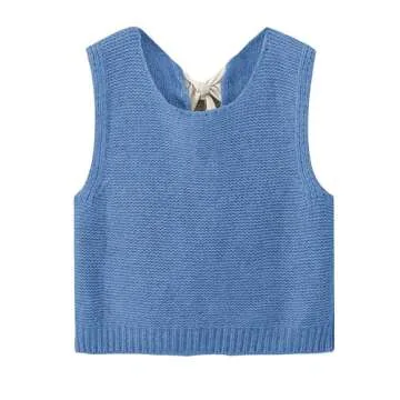 Lianlive Sweater Vest Top for Women Casual Crop Knit Cardigan Vest Bow Tie Back Knit Tank Tops (Blue-Small)