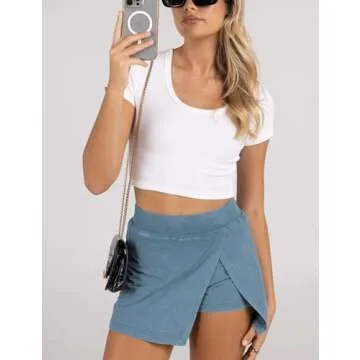 Lianlive Women's Mini Skirt High Waist Casual Split Hem Black Skort Athletic Tennis Bodycon Skirts with Inner Shorts (Blue-L)
