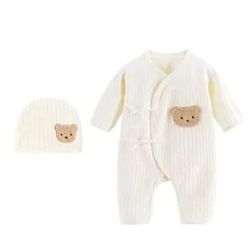 Show moreIntroduce your little one to the world of comfort and style with the LIANXUE Baby Cotton Jumpsuit & Hat Long Sleeve Romper. Made from soft and breathable cotton, this outfit is designed specifically for infants, ensuring your baby’s delicate skin is well cared for. With its adorable cartoon bear design and solid knitting, it offers both charm and practicality. The unisex style accommodates all tiny tots, making it a go-to option for any parent. Suitable for newborns up to 1 month old, this outfit promises to be a delightful addition to your baby's wardrobe.
