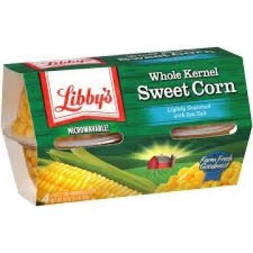 Show moreExperience the delightful taste of fresh corn with Libby's Whole Kernel Sweet Corn. Ideal for adding a sweet, crunchy element to your meals, this canned corn comes in a convenient 4 oz size and is packaged in a set of four, making it perfect for families or gatherings. Each can is filled with high-quality, non-GMO corn that is picked at peak freshness and packed immediately to preserve its sweet flavor and nutrients. Whether you’re preparing a classic corn salad, savory casseroles, or simply want to add a pop of color to your dishes, Libby's Whole Kernel Sweet Corn is your go-to choice for wholesome ingredients that your family will love. Say goodbye to tedious prep time and enjoy the convenience of ready-to-use corn!