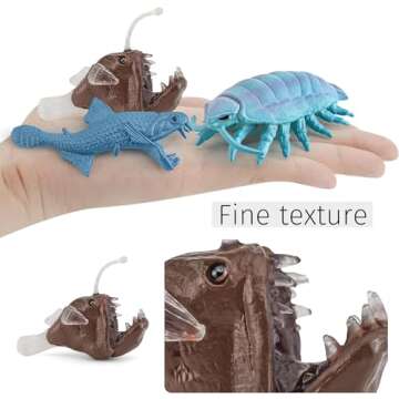 Show more Discover the wonders of the ocean with the Liberty Imports 7 PCS Deep Sea Creatures Mini Figurines Set. This unique collection includes seven hand-painted, lifelike deep sea creature figurines, such as an angler fish, viper fish, gulper eel, and other intriguing marine animals. Each model is meticulously crafted to spark curiosity and fascination in the young minds of children, making these toys not just fun but a captivating learning tool. At a time when interest in marine biology is surfacing, these realistic representations serve as a perfect introduction to the mysterious and beautiful world beneath the waves.