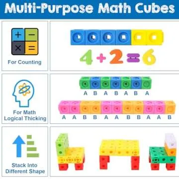 Libima 318 Pcs Math Counting Cubes Building Cubes Set with Stem Cards Linking Cubes Counting Blocks Manipulatives Math Preschool Math Counter Games for Boys Girls 4-8 Back to School Supplies