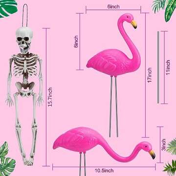 Each set includes eight eye-catching pieces, perfect for decorating your yard, garden, or even a Halloween-themed party. The 17'' statue body provides a striking visual appeal, while the delightful pink colors contrast beautifully with the traditional Halloween black and orange, making these flamingo skeletons a fun conversation starter that guests will love.