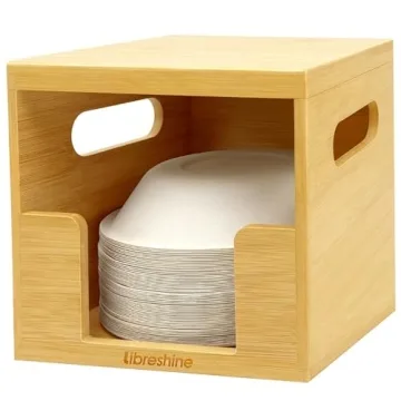 Libreshine Paper Bowl Dispenser - Kitchen Bamboo Organizer with Lid