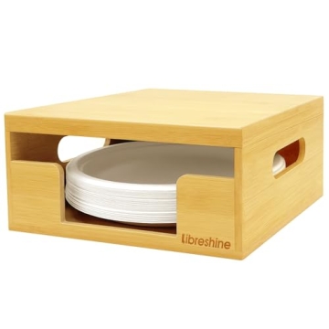 Introducing the Libreshine 8-10 Inch Paper Plate Dispenser, a perfect blend of style and functionality that dominates the organization game in your kitchen! Crafted expressly for those who value both aesthetics and utility, this bamboo paper plate holder not only elevates your kitchen's look but also offers unparalleled convenience. No more wrestling with overcrowded cabinets or damaging your plates! With the ability to store various plate types—round and square up to 10...